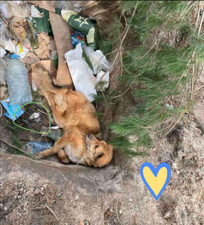 Жителі Макарова знайшли ледь живого пса в сміттєвій ямі і спробували витягнути, але, на щастя, встигли побачити вибуховий пристрій, який залишили окупанти. Як виявилося, вони настільки травмували тварину, що пес не міг самостійно пересуватися, і лише завдяки цьому зумів уникнути смерті від вибуху. Сапери розмінували його та передали волонтерам, які про нього дбають.