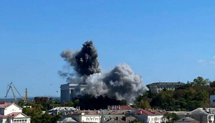 У мережі оприлюднили кадри ударів по штабу Чорноморського флоту РФ в Севастополі 22 вересня.