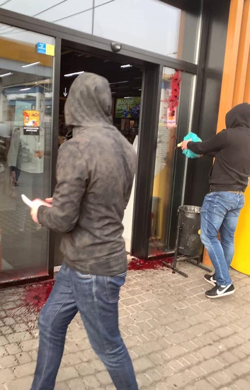 Представники організації "Національний Спротив" облили рідиною, схожою на кров, та заклеїли плакатами зі звинуваченням у фінансуванні проросійських сил, зокрема партії Шарія, одну з заправок мережі БРСМ у Києві.