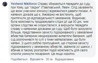 Один з коментаторів до цього посту пояснив, у чому саме активісти бачать "злив" цієї резонансної справи, терміни розслідування якої закінчуються тільки через 3 місяці.