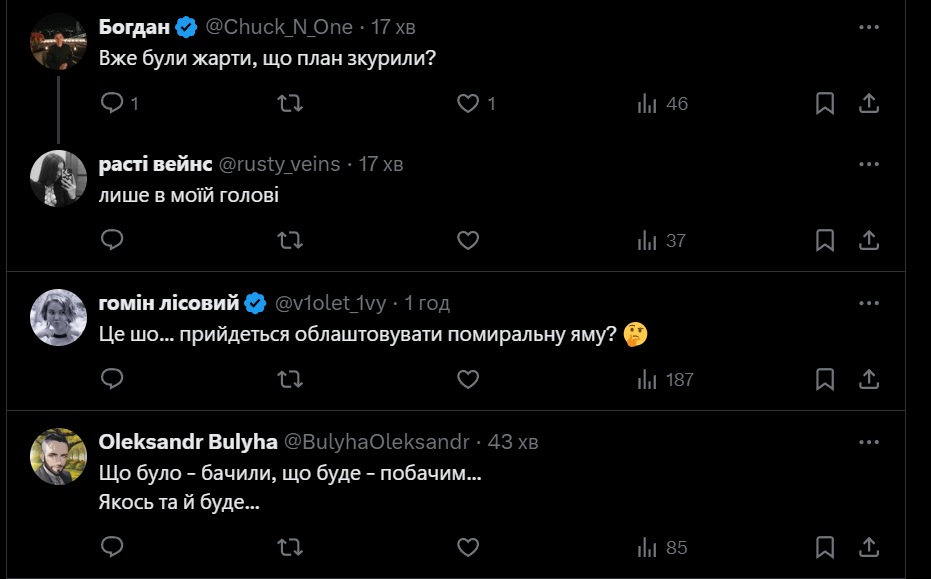 Проте користувачам Х він здався більш реалістичним, ніж озвучений Володимиром Зеленським вранці 16 жовтня у залі парламенту.