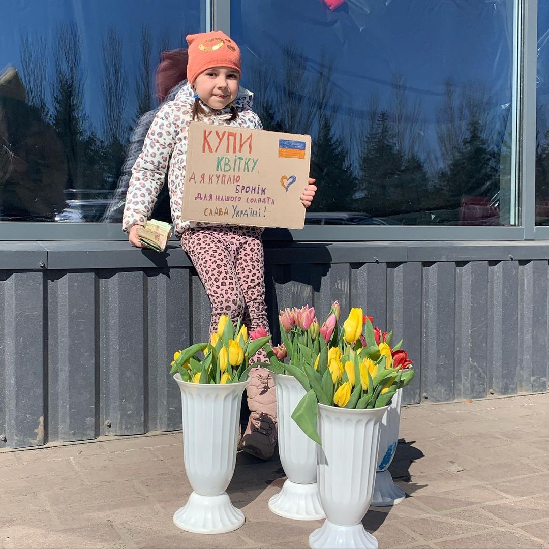 У цьому їм вирішили допомогти місцеві флористи. Вони надали дівчинці квіти для продажу. А Варя ж намалювала плакат "купи квітку – а я куплю бронік для солдата".