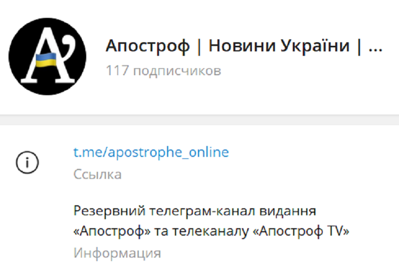 Апостроф завів новий офіційний Telegram-канал, оскільки на попередній окупанти здійснили хакерську атаку.
