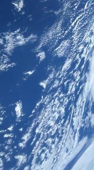 У відео видно вигин нашої планети, блакитне небо і хмари, що поширюються в атмосфері.