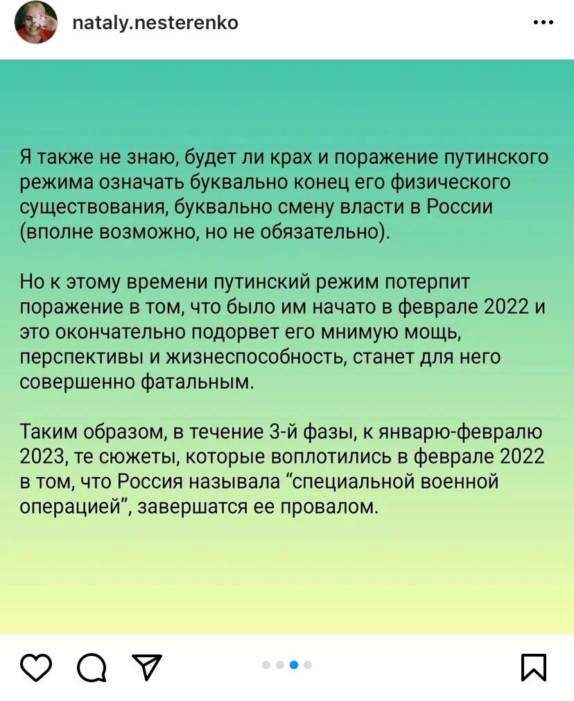 "Це завершення буде пов'язане з крахом путінського режиму та поразкою у його претензіях на реалізацію своєї "великої місії", на чужі права та території", - зазначає астролог.