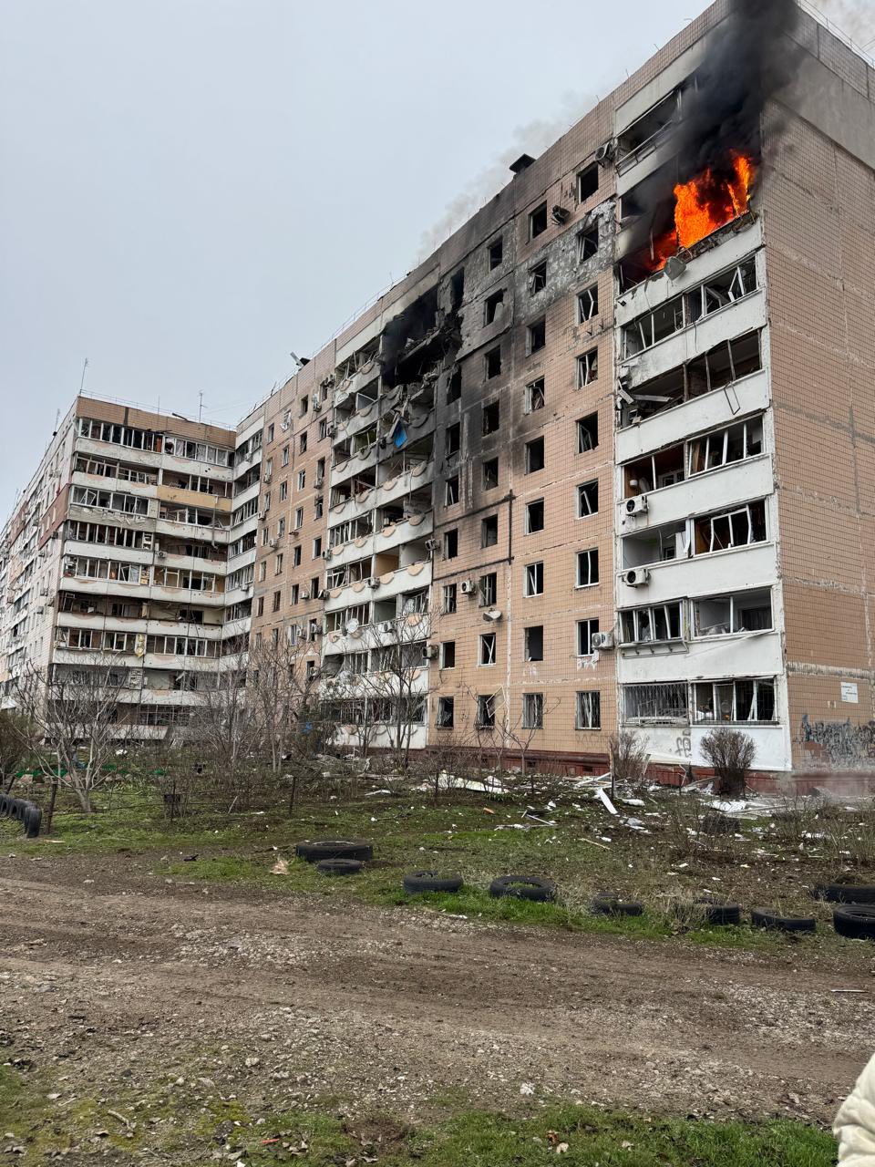 • у дев’ятиповерховому житловому будинку у Запоріжжі — 13 поранених мешканців.