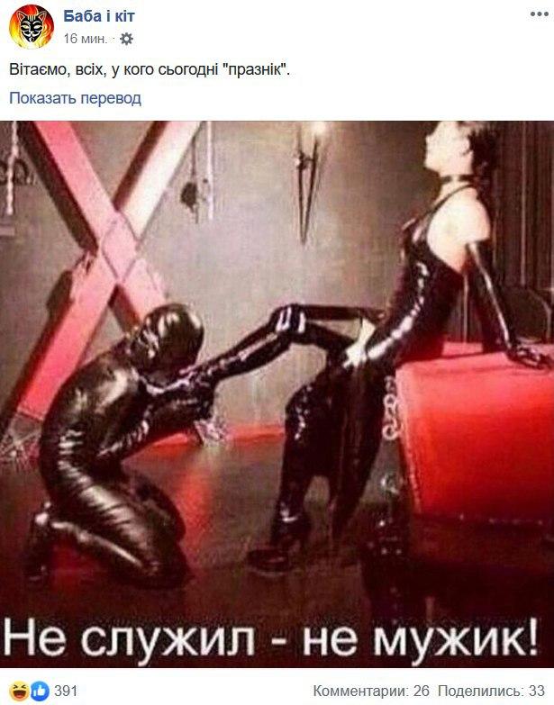На ще одній картинці обіграли значення слова "служив", інтерпретувавши його як БДСМ-відносини.