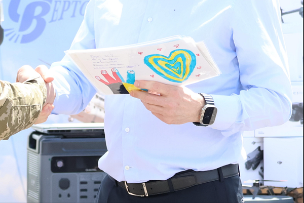 Техніку та обладнання військовослужбовцям особисто вручив Голова ради директорів авіакомпанії "Українські вертольоти" Володимир Ткаченко.