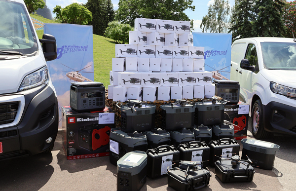 Відразу сім військових частин ЗСУ та окремий загін Державної прикордонної служби України отримали техніку та обладнання від компанії "Українські вертольоти". Авіакомпанія передала військовим допомоги на суму майже 10 мільйонів гривень: це 2 автомобілі, 10 квадроциклів, 50 квадрокоптерів, 6 генераторів, 6 пристроїв EcoFlow, зарядна станція, 30 батарей живлення, а також два ноутбуки і навіть інтерактивний стіл.