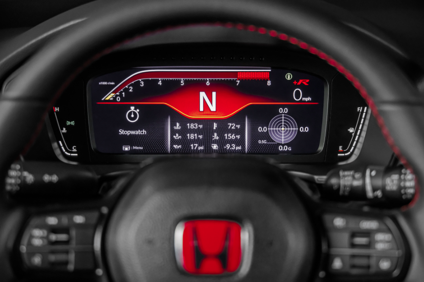 Дев'ятидюймовий інформаційно-розважальний екран оснащений ексклюзивним реєстратором даних Honda LogR, який допомагає відстежувати та записувати параметри продуктивності в режимі реального часу, щоб покращити ваші навички під час руху по закритій трасі. Крім цього, дисплей підтримує бездротовий зв'язок Apple CarPlay та Android Auto.