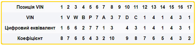 Різниця між результатами чисел 3 та 4 пунктів – це число, яке вписується 9 знаком у VIN: