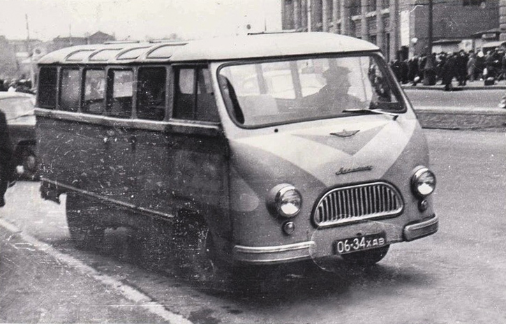 Мова йде про ЛАРЗ-977. Його створили у рамках спроби налагодити виробництво РАФ-977 на Луганському автоскладальному заводі. У період із 1962 по 1963 рік було випущено 400 таких мікроавтобусів.