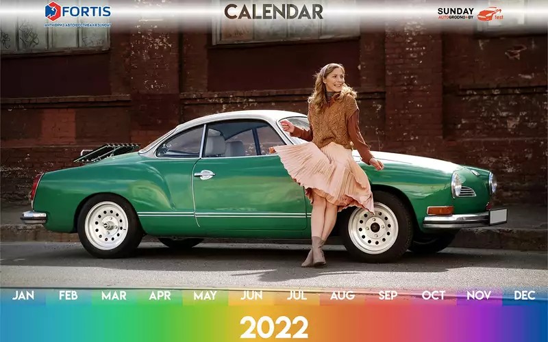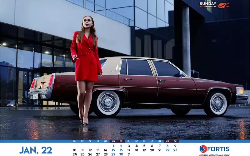 У Білорусі випустили календар SunDay на 2022 рік, у якому представлені унікальні машини з різних країн світу, а поруч із ними – білоруські моделі в образах, що відповідають часу випуску авто.