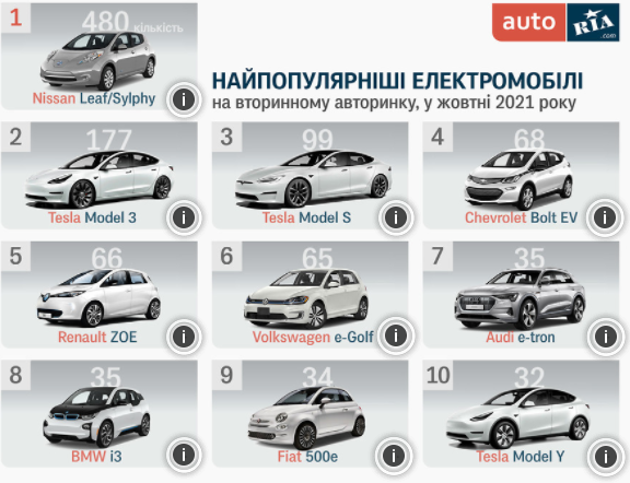 Найпопулярнішою моделлю, за даними Auto.ria, став Nissan Leaf.