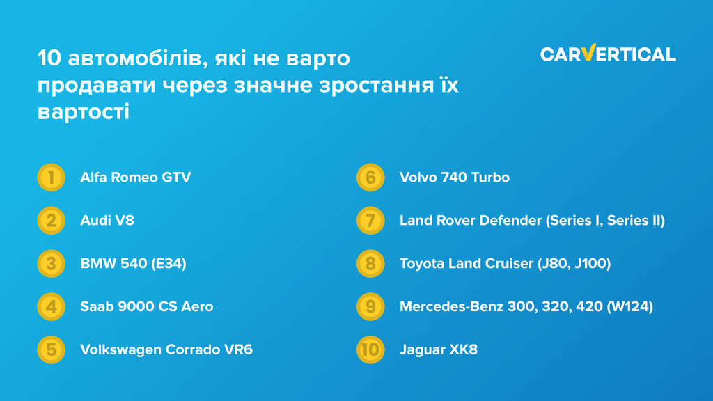 Фахівці назвали ТОП-10 вживаних авто, які не потрібно продавати, тому що вони значно зростають у ціні.
