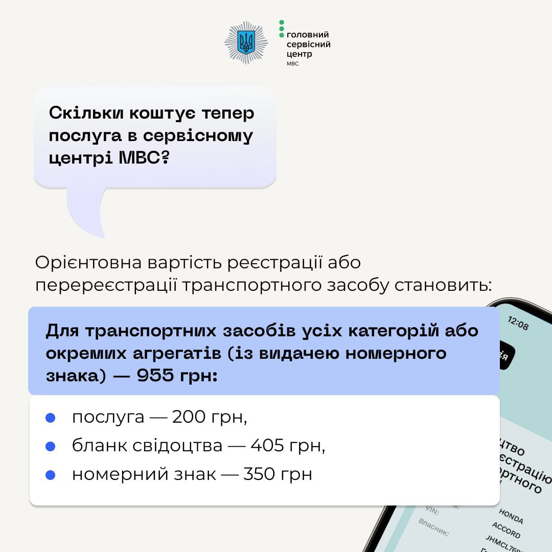 У вартість комплексної послуги з реєстрації або перереєстрації входить кілька платежів, зокрема за бланк свідоцтва про реєстрацію транспорту. Нову партію бланкової продукції отримали за найвищим тарифом.