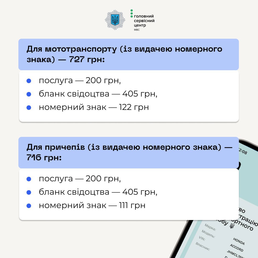 Для причепів (з видачею номерного знака) – 716 грн: