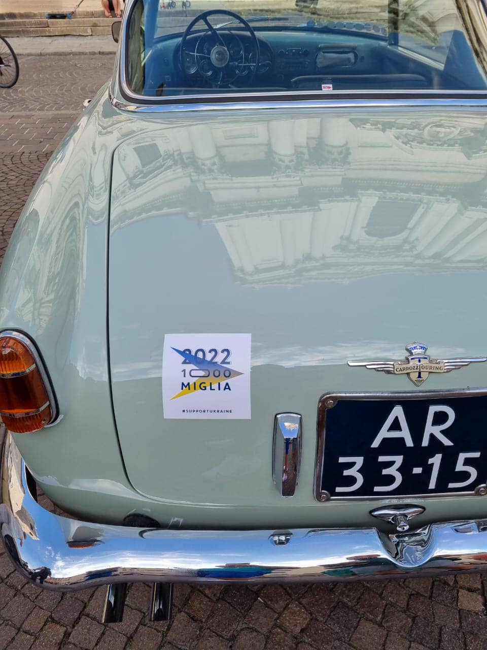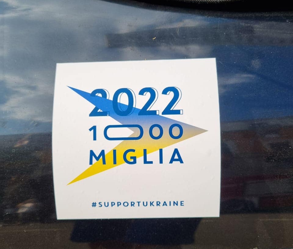Українські волонтери в Італії звернулися до рганізаторів Mille Miglia 2022 звернулися за підтримкою. Звичайно, українцям не відмовили, тому на всіх ретро-автомобілях з'явилися українські патріотичні наліпки. До того ж деякі машини ще й мали синьо-жовті стяги.