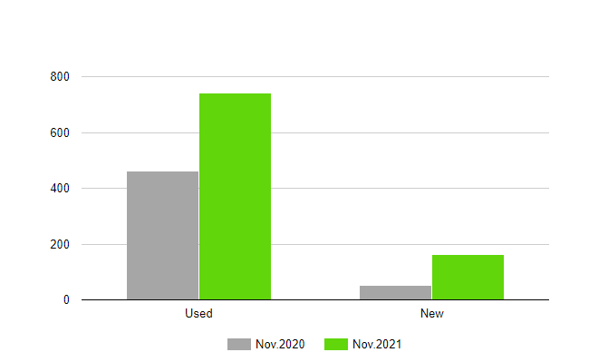 Зазначається, що в листопаді парк поповнили 905 таких автомобілів. А це на 76% більше, ніж роком раніше.