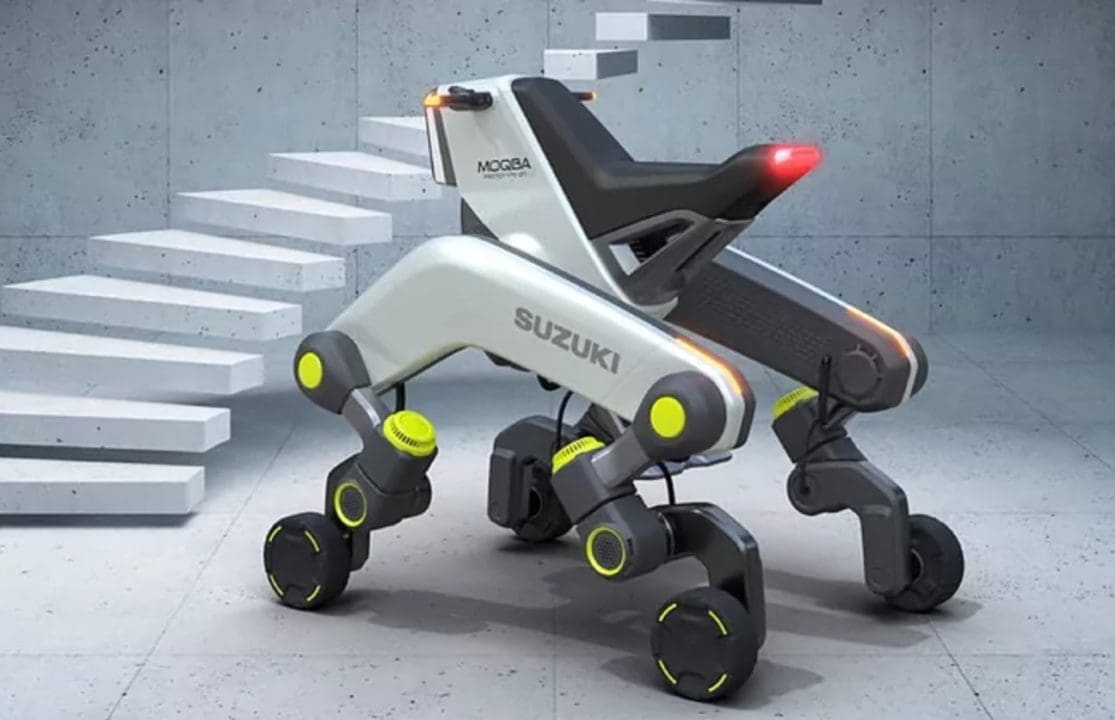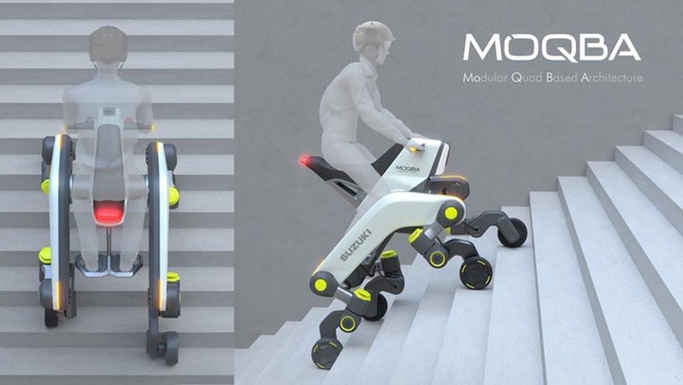Повідомляється, що інженери японської машинобудівної компанії Suzuki Motor показали концепт MOQBA (Modular Quad Based Architecture) – чотириколісний скутер або мотоцикл, який буде здатний підніматися сходами за допомогою своєрідних "ніг".