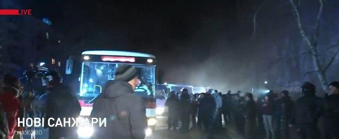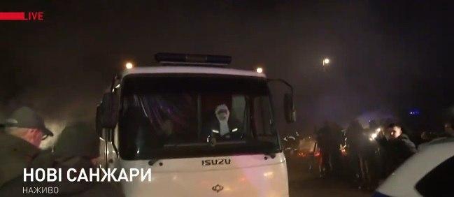Автобуси з евакуйованими з Китаю українцями прибули в санаторій в Нових Санжарах, проїзд до якого блокували місцеві жителі, які побоюються поширення небезпечного коронавируса.