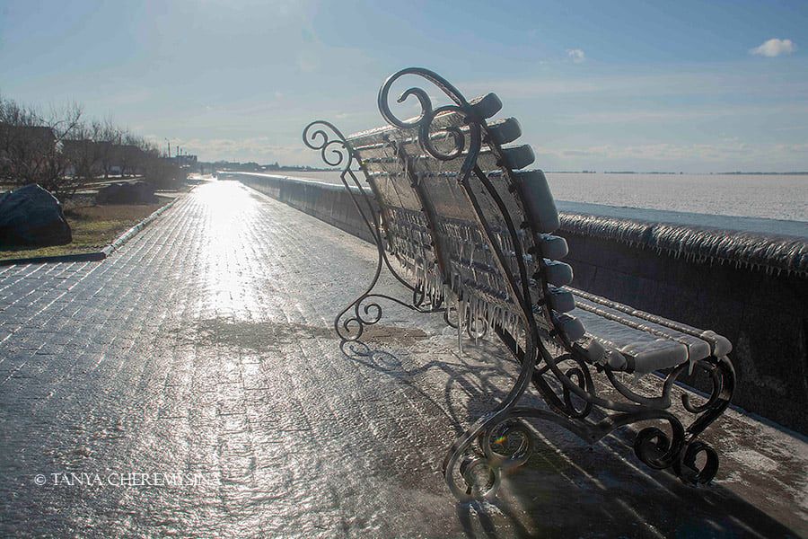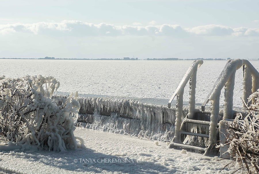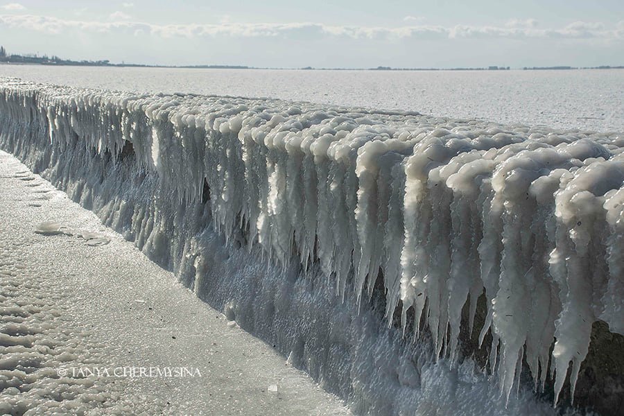Через сильні морози, які накрили Україну,замерзло Азовське море - набережна курортного Бердянська повністю покрита льодом.