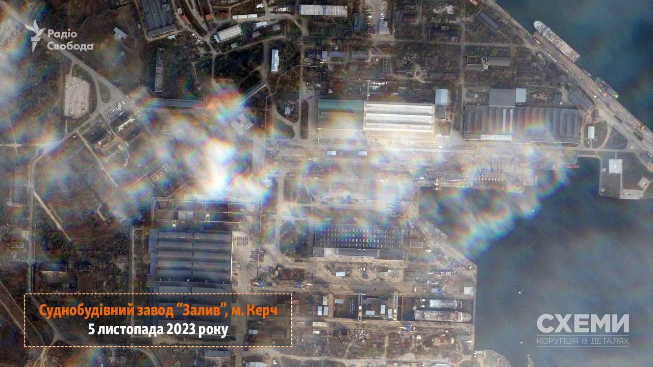 З'явилися супутникові знімки наслідків українського ракетного удару по суднобудівному заводу "Залив" у Керчі окупованого Криму за 5 листопада. На кадрах видно місце ураження та пошкоджений російський військовий корабель.