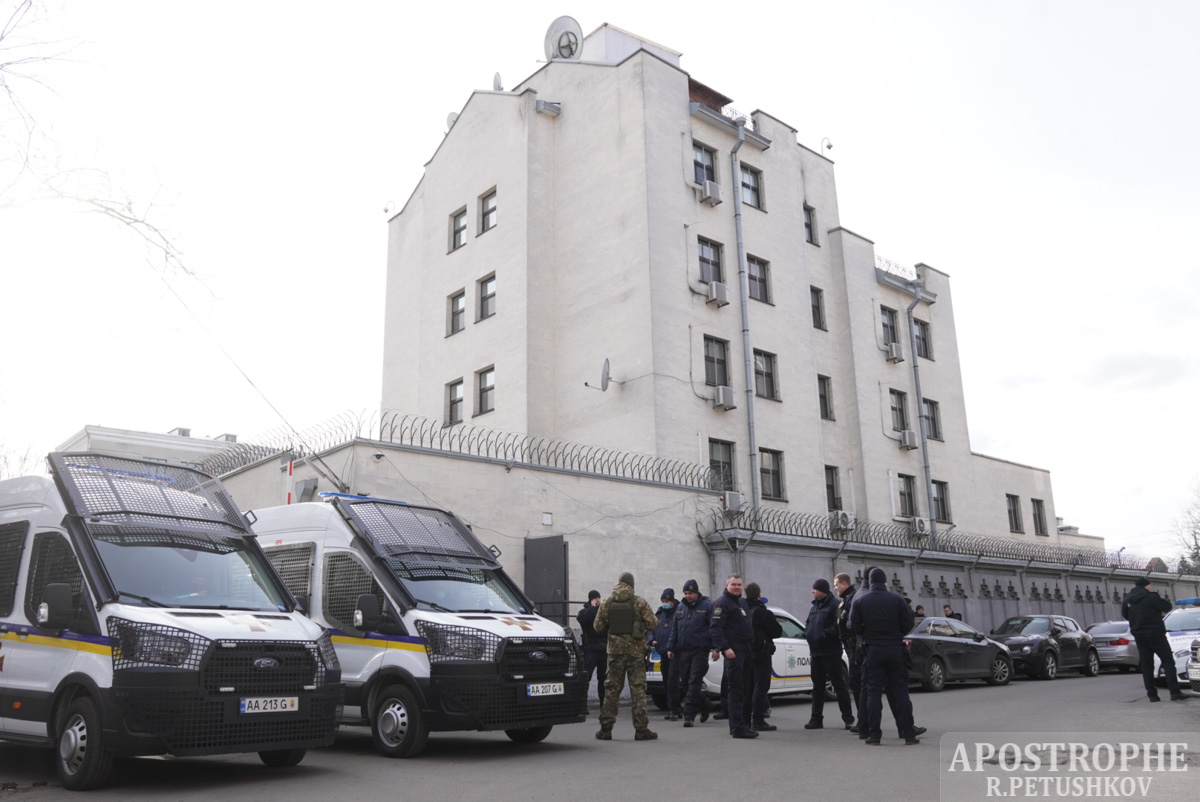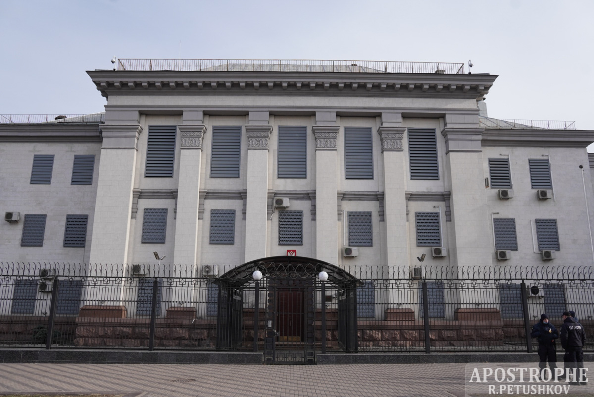 23 лютого посольство Російської Федерації у Києві поспішно залишили дипломати. Евакуація персоналу відбувалася через чорний хід.