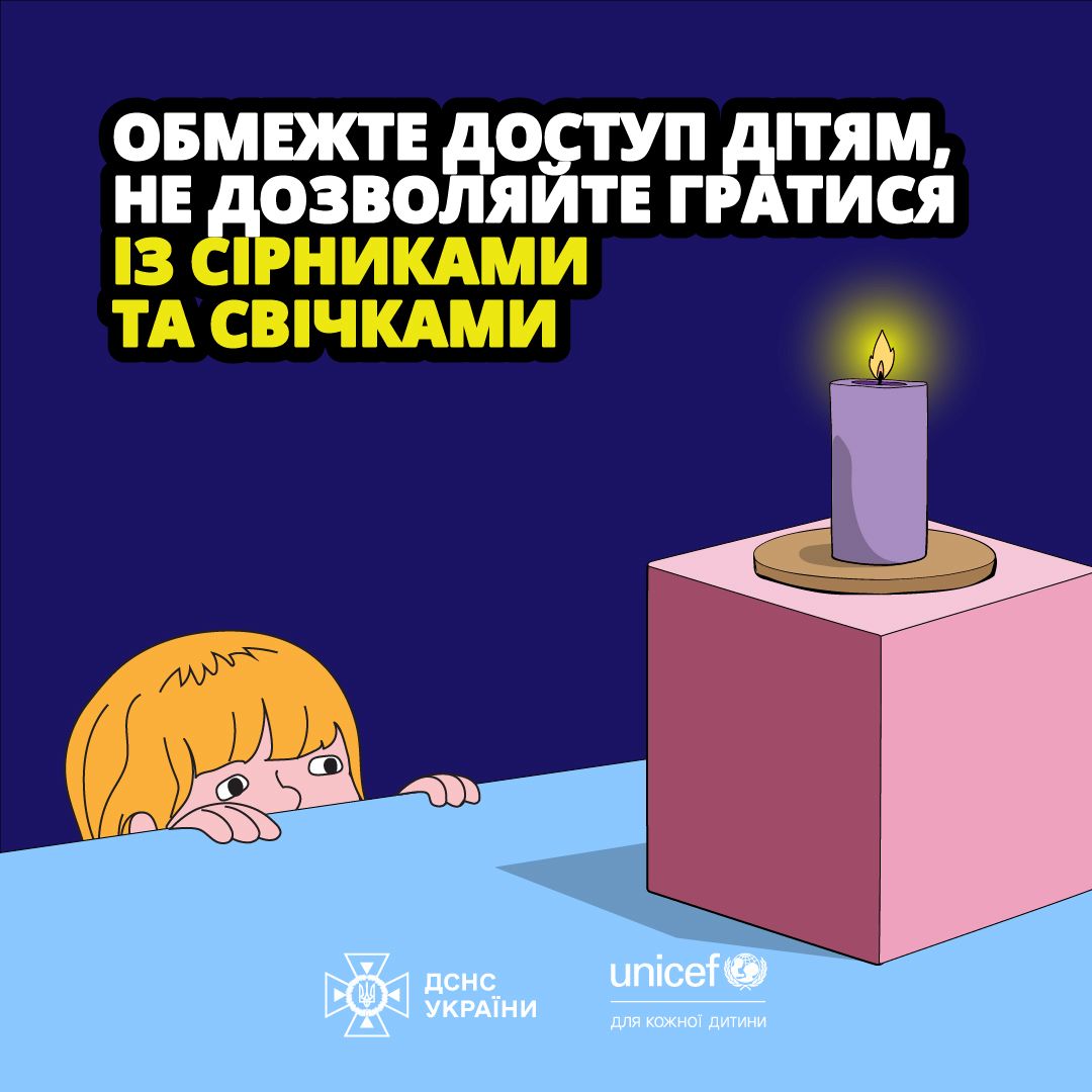 Також не дозволяйте дітям гратися зі сірниками та свічками, адже це призведе до пожежі.