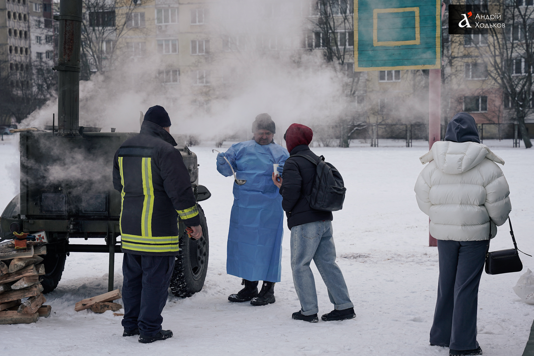 Для максимальної зручності мешканців намети розгортають безпосередньо у дворах багатоповерхових будинків. Люди в цих пунктах забезпечені гарячою їжею.