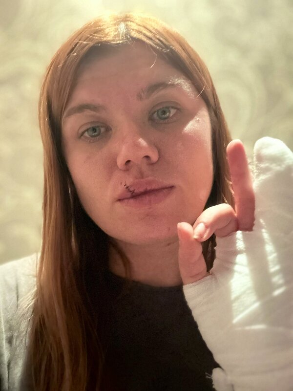 Вона також показала фото, на якому у дівчини поранена губа та забинтована рука.
