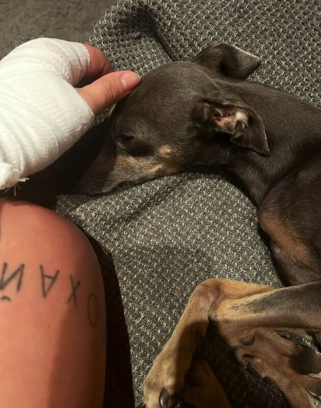 Також повідомила, що виявила у свого собаки поранення після нападу - зламане ребро та кілька прокусів: "Новини на ранок, у малого зламане ребро і наявні декілька прокусів, з ребром собаці нічого не роблять, за прокусами дивимось, щоб не було зараження, поки трохи на знеболі".