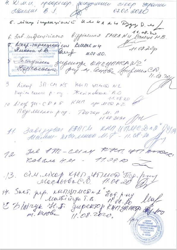 Серед них медики, зокрема, Київської міської клінічної лікарні №4; Центру первинної медико-санітарної допомоги №2 Подільського району; клініки Інституту епідеміології та інфекційних хвороб Академії медичних наук України, та інших медзакладів столиці.