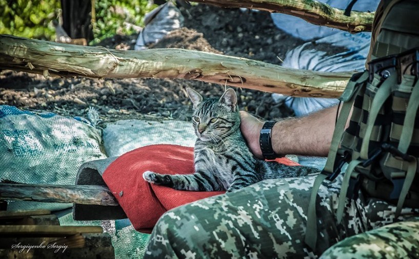 У мережі були опубліковані фотографії військовослужбовців української армії на передовій з домашніми вихованцями - котами.