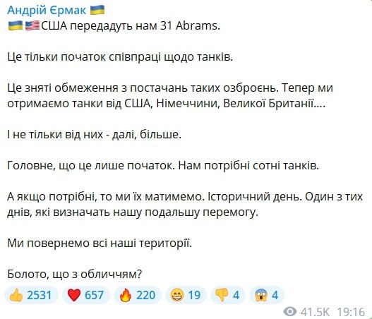 Читайте також: Що ще, крім "Абрамсів", отримають ЗСУ: журналіст дізнався в Пентагоні деталі