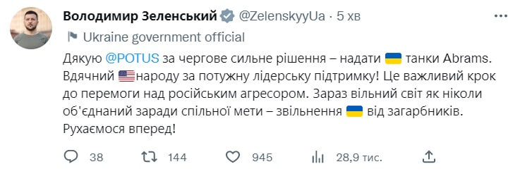 У середу, 25 січня, стало відомо про те, що президент США Джо Байден підтвердив передачу танків Abrams Збройним силам України.