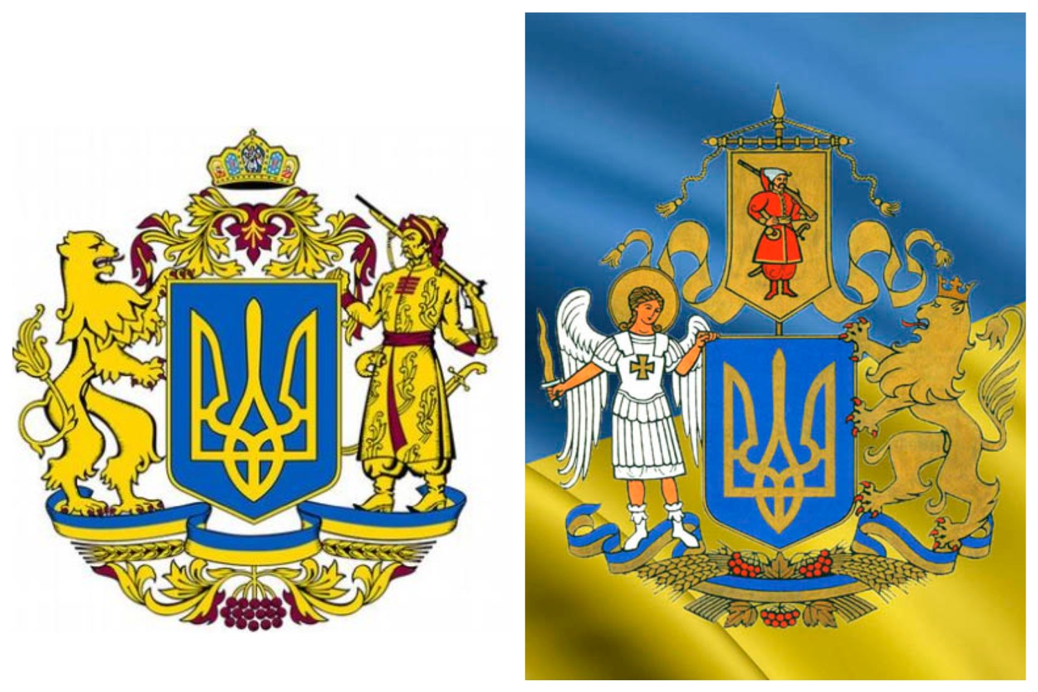 Фігура козака з самопалом, поміщена на ескіз Великого Державного Герба України, найбільше відповідає історичному контексту і зображувалася ще на гербі Війська Запорозького.