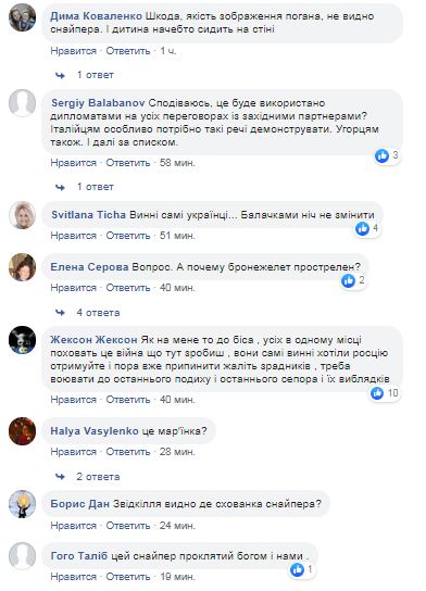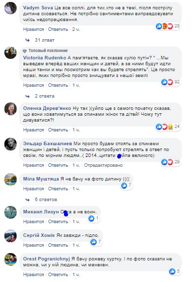 "Сподіваюсь, це буде використано дипломатами на усіх переговорах із західними партнерами? Італійцям особливо потрібно такі речі демонструвати. Угорцям також. І далі за списком", "Ну так )(уйло ще з самого початку сказав, що вони ховатимуться за спинами жінок та дітей! Чому тут дивуватися?!", "Як завжди - підло", "Це все соплі, для тих хто не в темі, після пострілу дитина сховається. Не потрібно сантиментами виправдовувати чиїсь недопрацювання", "Я бачу рожеву куртку. І по фото сказати не можна, чи у ній людина, чи манекен", - пишуть вони.
