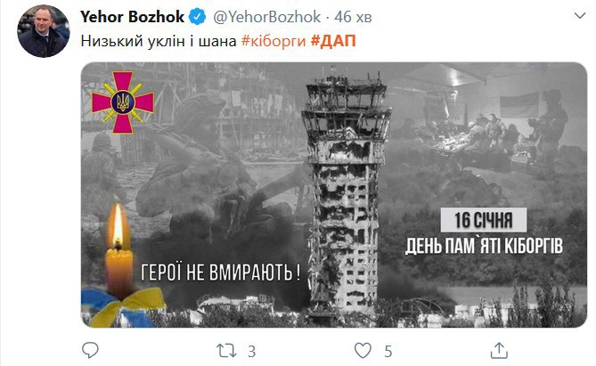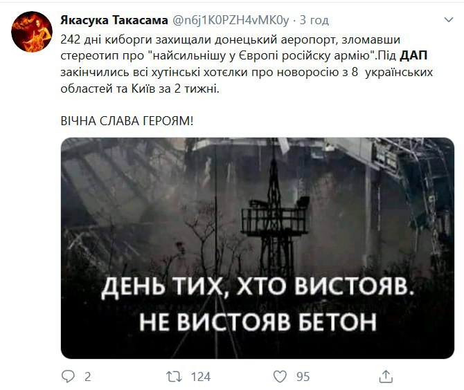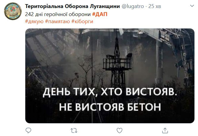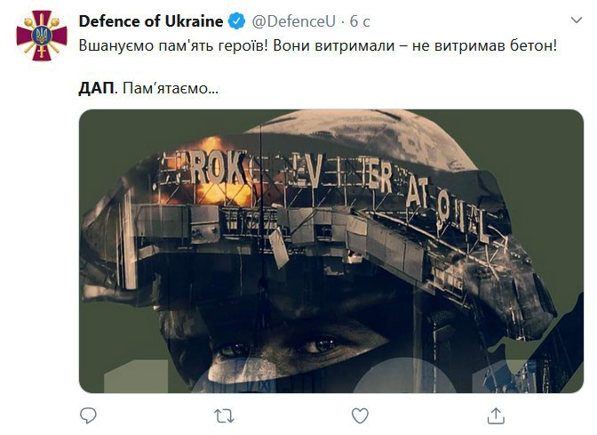 "Вшануймо пам'ять героїв. Вони витримали - не витримав бетон", - йдеться в пості Міністерства оборони в Twitter.