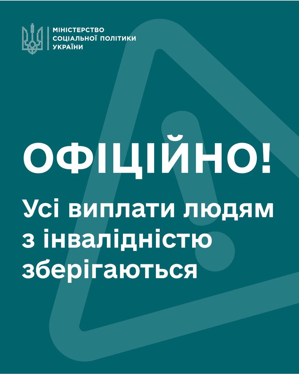 Також у міністерстві зазначили, що всі виплати людям з інвалідністю зберігаються і їх виплачуватимуть і надалі. А жодних ініціатив щодо такого скасування немає.