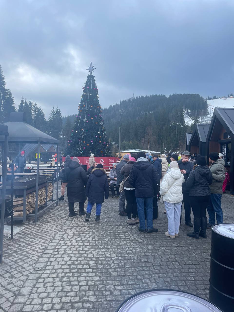 Один з відпочиваючих зазначає, що станом на 31 грудня 2023 року кількість людей у центрі Буковелю врази зросла.