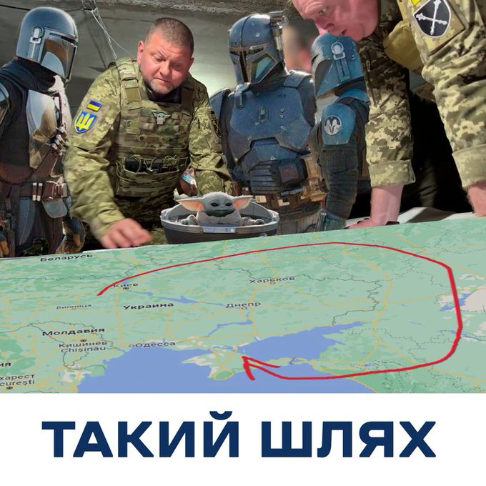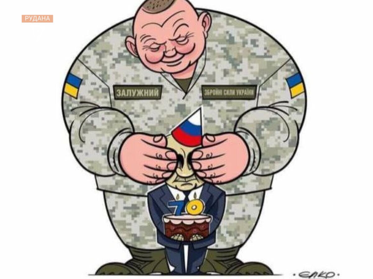 Так, головнокомандувача зображають героєм, який бореться зі злом та відстоює свої землі - він нокаутує Шойгу та Путіна "однією лівою", а останньому дарує тортик на 70-річчя із синьо-жовтими свічками. При цьому Залужний не забуває "піклуватися" про вдів та матерів загиблих рашистів, натякаючи: якщо нога ворога ступить на українські землі, вони отримають білосніжну "Ладу".