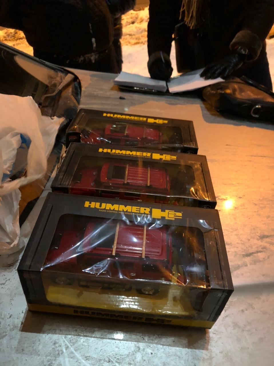 Як сказано в повідомленні, львів'янин відправляв кокаїн оптовими партіями за допомогою приватних служб таксі, при цьому наркотики маскувалися в дитячих іграшках. Як видно на фото, пакети з білим порошком були заховані в порожнинах іграшкових машинок "Hummer".
