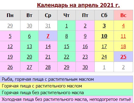 У квітні відзначають Благовіщення Пресвятої Богородиці (7 число), Вселенська поминальна субота 4-го тижня Великого посту (10 квітня).