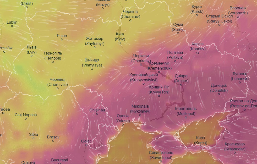 Про це свідчать дані тематичного порталу Ventusky.