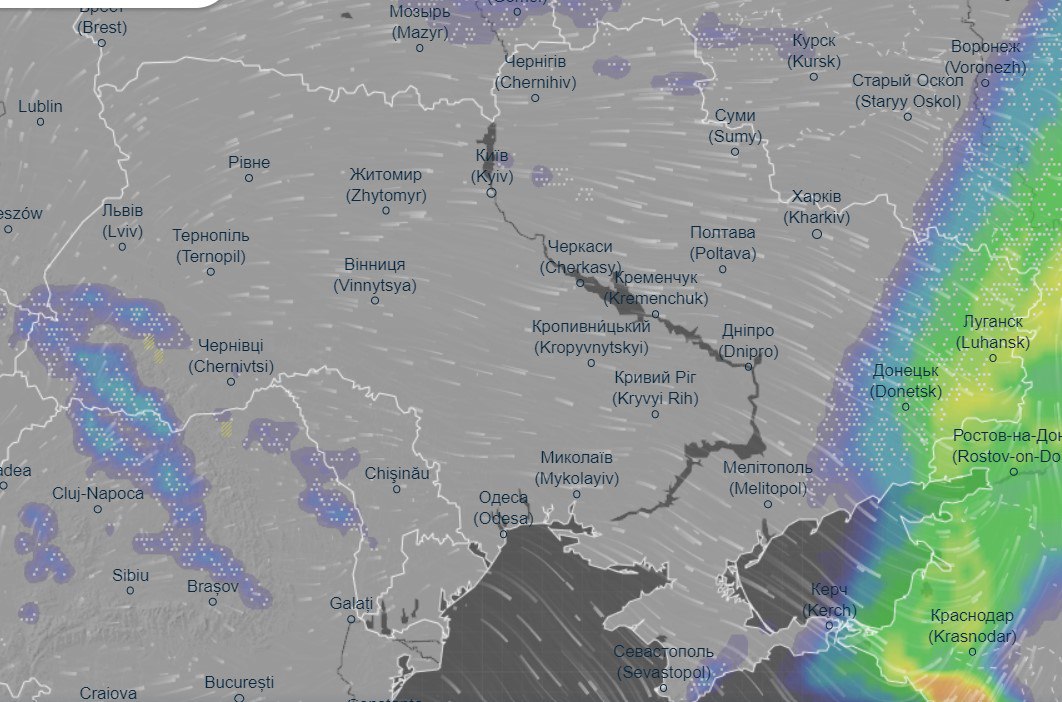 Після полудня опади посиляться, найбільших слід очікувати в Харкові, Дніпрі, Донецьку, Луганську та Мелітополі - до 9 міліметрів.
