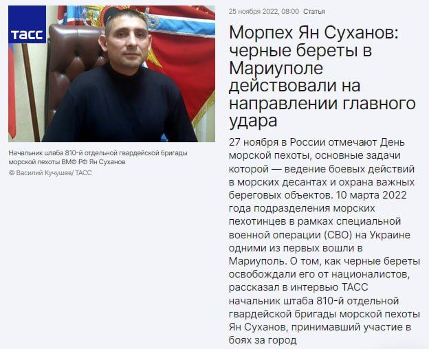 8 листопада один із російських полковників, який очолював 810 бригаду ЗС РФ, помер після отриманого поранення навесні в Україні.