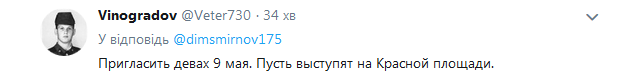 "Запросити дівок на 9 травня. Нехай виступлять на Червоній площі", "Ось кого треба відправляти на Євробачення від Росії, а не Лазарєва, який заявив на українському ТБ, що Крим - це Україна", - пишуть в мережі.