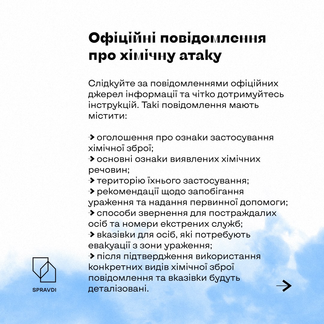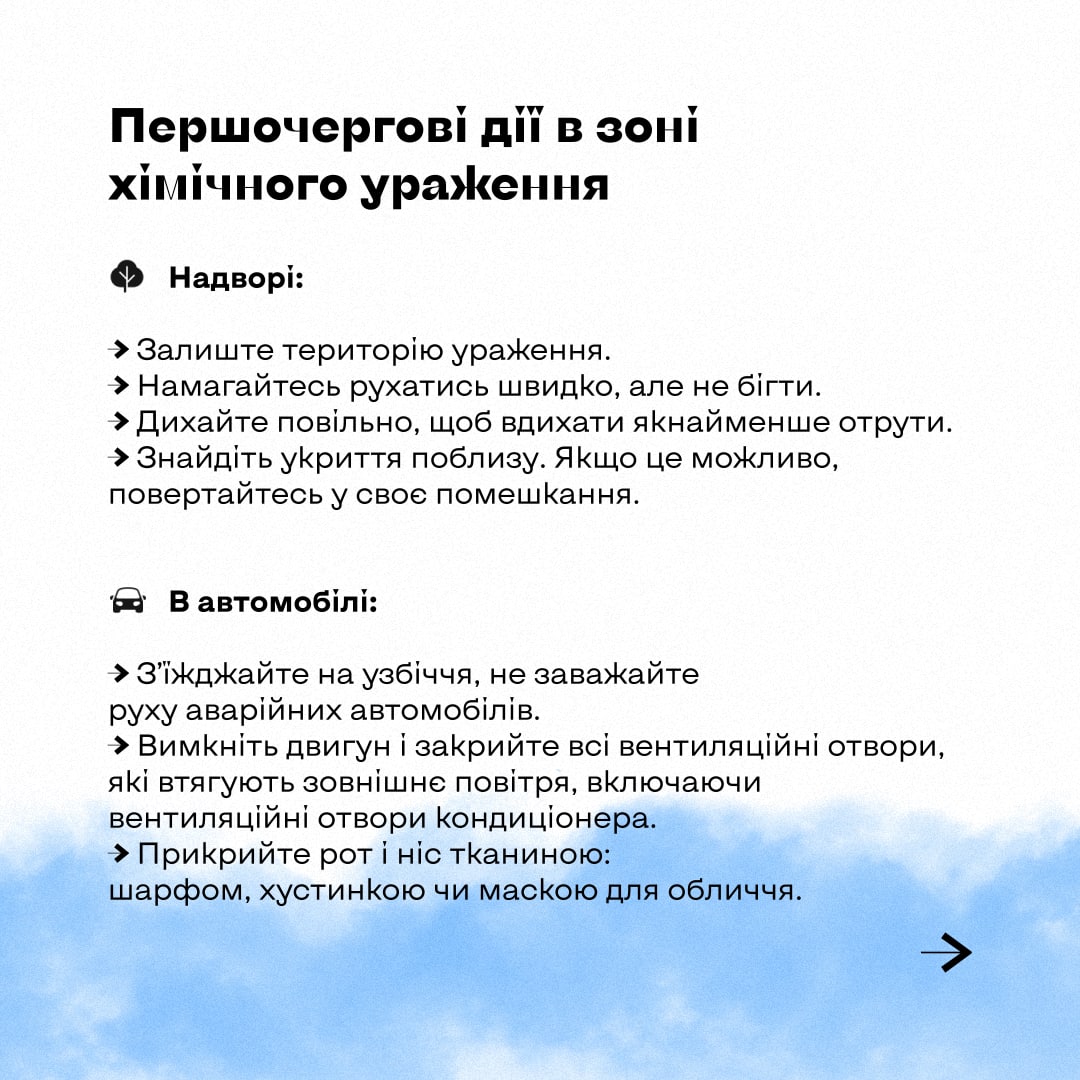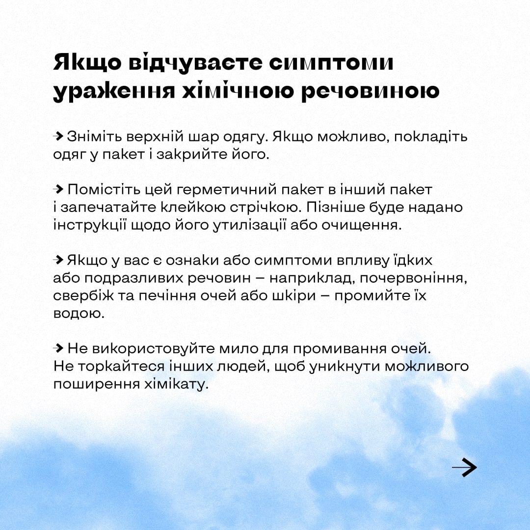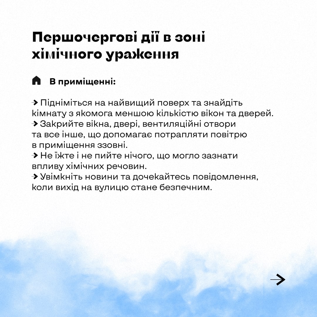 Telegram-канал "Телеграмна служба новин" розповів, що робити у разі хімічної атаки або аварії на хімічному підприємстві.