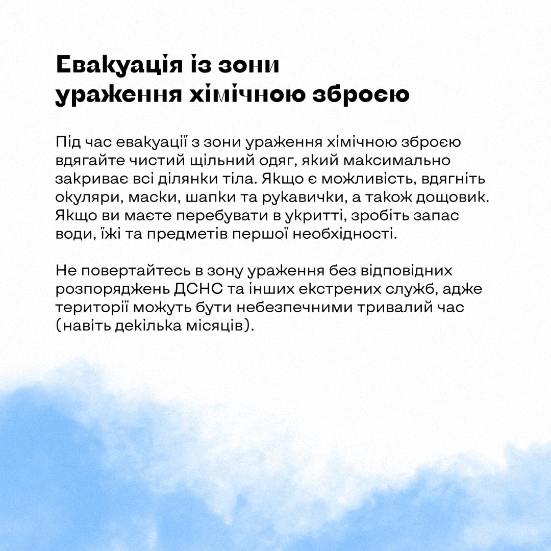 У разі евакуації під час хімічної атаки чи аварії потрібно: